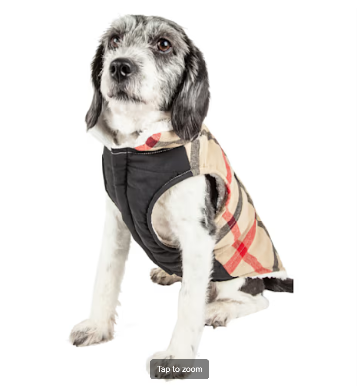 The Pet Life 'Allegiance' Classical Plaided Insulated Dog Coat features a Classical Tattersall Plaided Pattern composed of 100% Cotton along the back that extends into the collar with reversible Ultra-Soft Sherpa that gently hugs the body and inner lined with High-Grade Plush Polyfill for added warmth and comfortability. Features Tough-Grade Velcro Belly Enclosures for convenient on and off access and a leash slit below the neck line. Available in Multiple Colors and Sizes. SIZING SPECIFICATIONS: In (Inches) "Back" Length is from Neck to Tail: * See image chart for sizing approximation. EXTRA SMALL: Back: 9.1" Chest: 17.3" Neck: 12.2" SMALL: Back: 11" Chest: 21.3" Neck: 13.8" MEDIUM: Back: 13.8" Chest: 24.4" Neck: 15" LARGE: Back: 18.1" Chest: 29.9" Neck: 16.9" EXTRA LARGE: Back: 22.8" Chest: 35.4" Neck: 18.9".